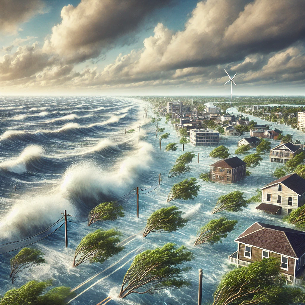 - 태풍이나 허리케인에서 발생하는 강한 바람이 바다 위의 물을 해안으로 밀어올려 해수면이 상승합니다.