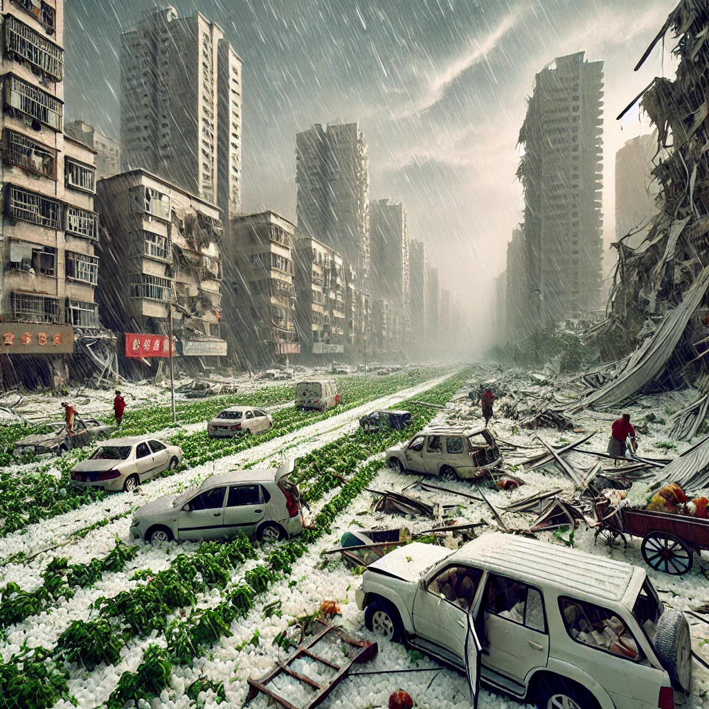 1999년 5월 5일, 중국 쓰촨성의 청두에서 발생한 우박 폭풍은 엄청난 피해를 입혔습니다. 이 폭풍은 직경이 3~5cm에 이르는 큰 우박을 동반했으며, 약 3시간 동안 지속되었습니다. 이로 인해 약 9만 헥타르의 농작물이 피해를 입었고, 수천 채의 건물과 집이 손상되었습니다. 또한, 많은 차량이 파손되고, 도로와 교통 인프라에도 큰 피해가 발생했습니다. 경제적 손실은 약 5억 위안(약 7200만 달러)으로 추정되며, 수많은 주민들이 삶의 터전을 잃고 경제적 어려움에 처하게 되었습니다.